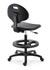 Banco tipo cajero, asiento y respaldo de poliuretano suave de alta resistencia color negro, aro de metal pintado en cromo. Base de 5 puntas con ruedas o deslizadores a elección del cliente.