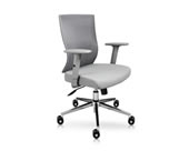 El respaldo de esta silla cuenta con una estructura de polipropileno y fibra de vidrio tapizado en malla con soporte lumbar fijo y cabecera tapizada en malla con ajuste de altura. Su asiento es acojinado en espuma estándar de 7.5cm de ancho por 35kg/m3 de densidad y tapizado en tela de acrílico. La base es de 5 puntas de nylon de 26" con rodajas de 50mm.
